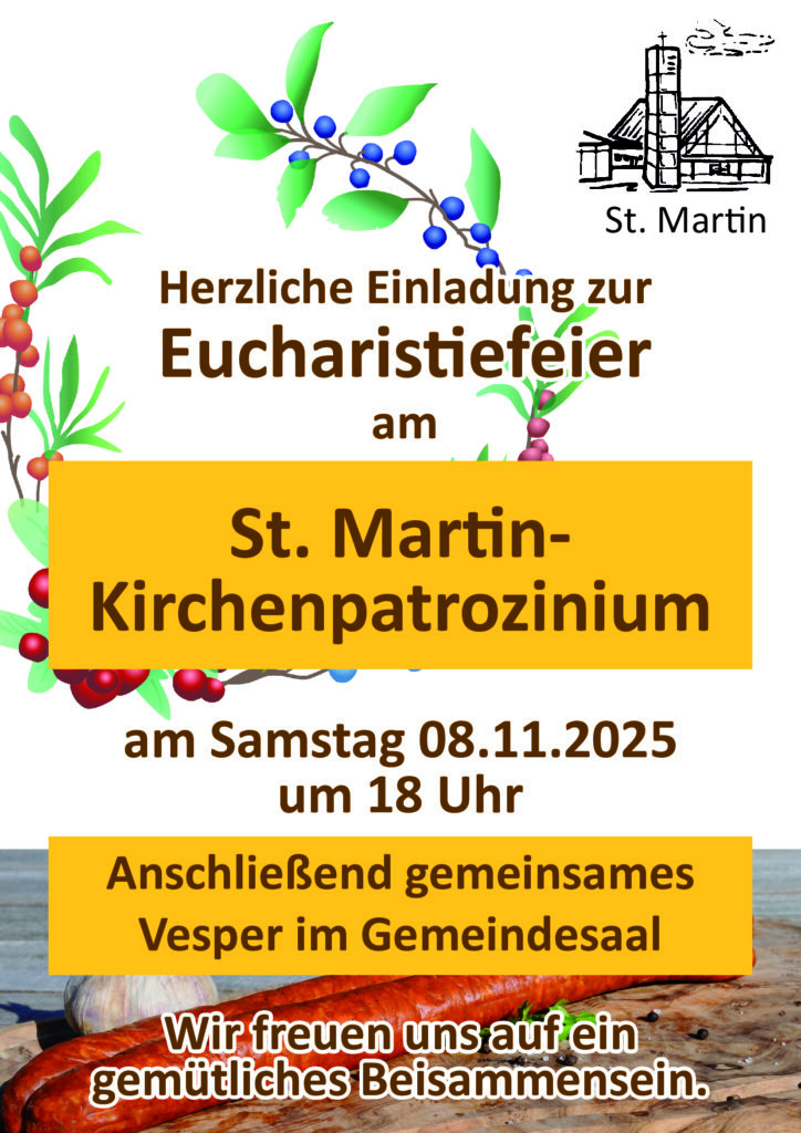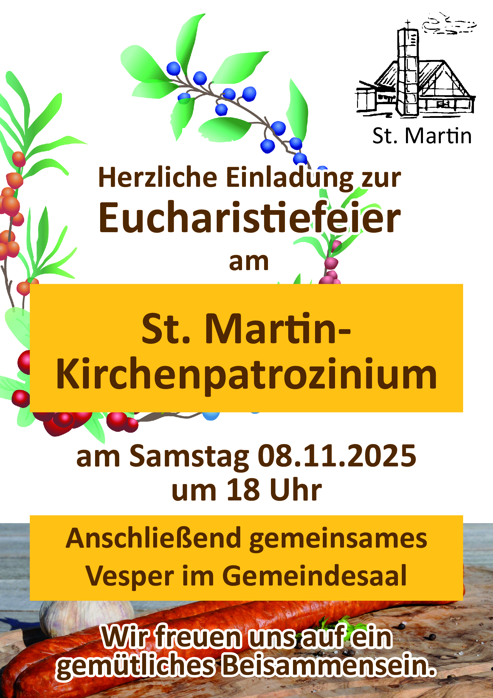 Wir beginnen um 9.00 Uhr mit der Eucharistiefeier (Direktor Fahrner und Diakon Babic) in Heiligenbronn. Es folgt eine Öschprozession nach Lützenhardt. Dort lädt die Kirchengemeinde zum Mittagessen (Fleischkäse mit Kartoffelsalat) und Kaffee / Kuchen ins Gemeindezentrum ein. Der Erlös geht an den Kindergarten Förderverein. Es besteht die Möglichkeit, in Fahrgemeinschaften zurück nach Heiligenbronn zu kommen.