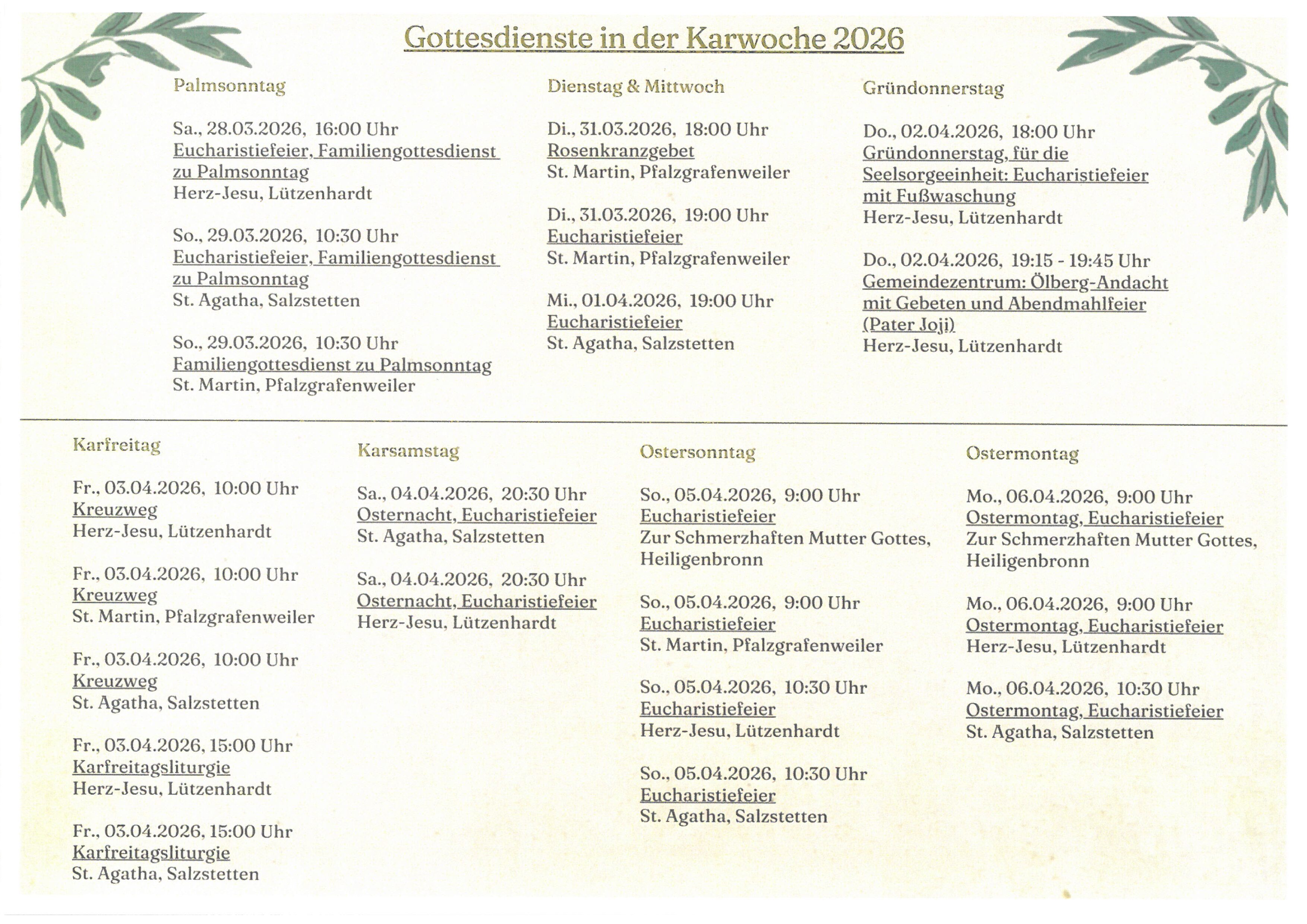 Donnerstag, 26. Februar 2026 um 20.00 Uhr im katholischen Gemeindezentrum Salzstetten, Hauptstr. 35, 72178 Waldachtal